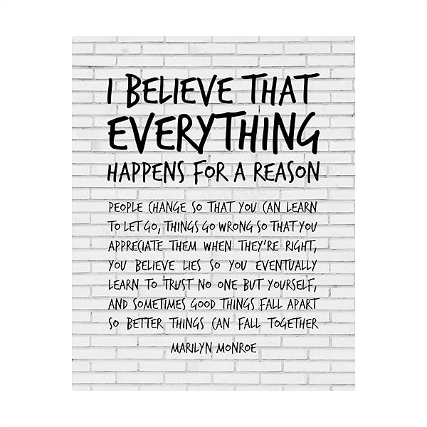 Amazon Com Marilyn Monroe I Believe That Everything Happens For A Reason Inspirational Quotes Wall Art 8 X 10 Retro Print W Replica Brick Wall Design Ready To Frame Perfect Home Office Studio Cave Decor Handmade Products